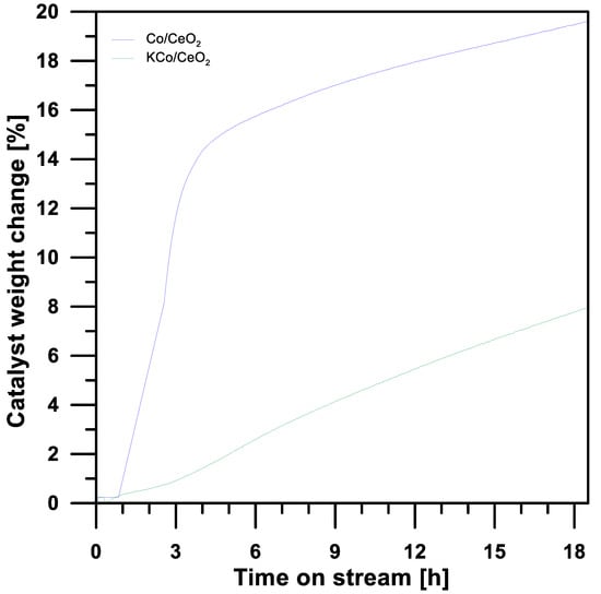 3.3. The Effect of Potassium Doping on Prevention of the Cobalt-Based Catalyst Deactivation under SRE Conditions