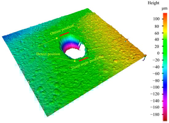 Due to the lower thermal influence from the laser and minimal contact with the plasma on the blunt angle side during processing, there is no significant damage or coating delamination. However, there are microcracks formed on the hole wall surface due to thermal stress, as depicted in Figure 11d–f. The evaluation criterion for the blunt angle side is the average length of cracks starting from the bond layer and extending horizontally toward the surface.