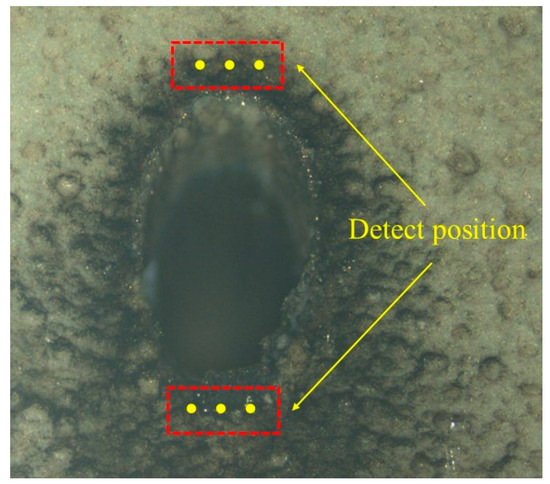 Measurement of surface microhardness of microholes (The yellow dots indicate the detect position).