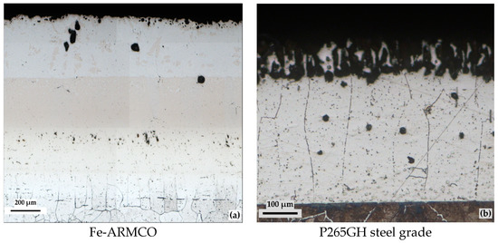 Thus, under the same thermochemical processing conditions, the P265GH low-alloy grade steel registers a slower growth kinetics layer than in the case of Fe-ARMCO.