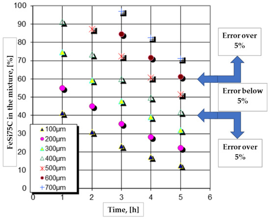 X3—the proportion of the active component in the mixture—FeSi75C (72–75 ÷ Si, <0.1 %C, about 2% Al).
