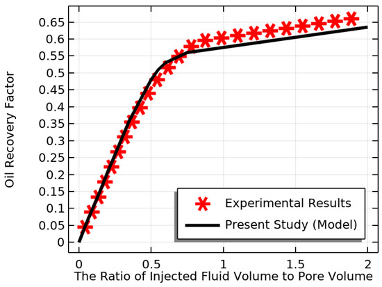 Several researchers have developed different approaches for developing a mathematical model to predict oil production after NFs are injected into oil reservoirs. Liu and Civan [12,18] proposed a prediction model for the oil recovery factor (ORF) by employing a two-phase flow of oil and water in sandstone. When NPs were added to the base fluid, the reservoir’s wettability and permeability changed. These changes were measured mathematically while considering pore-clogging and porosity alterations. The impacts of NP and pore surface relative permeabilities, capillary pressure, and wettability on two-phase flow were investigated. However, the drawback of their model is that it neglects the fluid density and viscosity changes caused by adding NPs to the fluid.