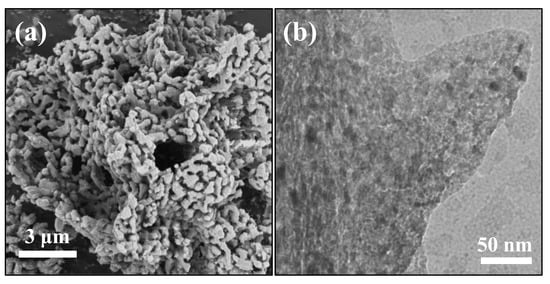 (a) SEM and (b) TEM images of the spent Na-Ni/CaO DFM after 20 cycles of integrated CO2 capture and hydrogenation.