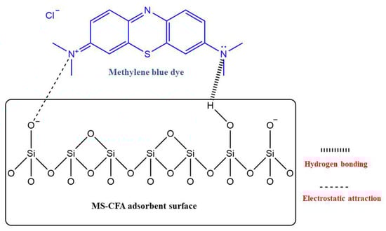 Adsorption mechanism of methylene blue dye by the MS-CFA [56].