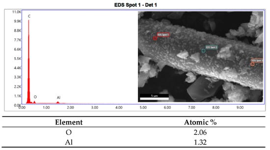 Regarding the EDS analysis, traces of aluminum and oxygen (Figure 3) were identified.