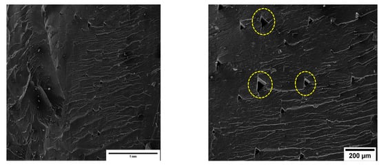 As already described for filaments, in this case also, liquid nitrogen was used to image with SEM the fracture surfaces of the specimens.