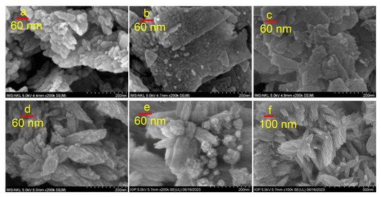 The scanning electron microscope (SEM) was utilized to investigate the microstructure and morphology of the samples, as depicted in Figure 3.