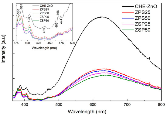 Additionally, the PL emission spectra (excitation at 325 nm) were acquired and are presented in Figure 6.