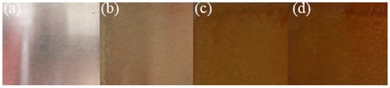 Figure 3. Surface color was recorded every 10 min after spraying. (a) 0 min; (b) 10 min; (c) 20 min; (d) 30 min.