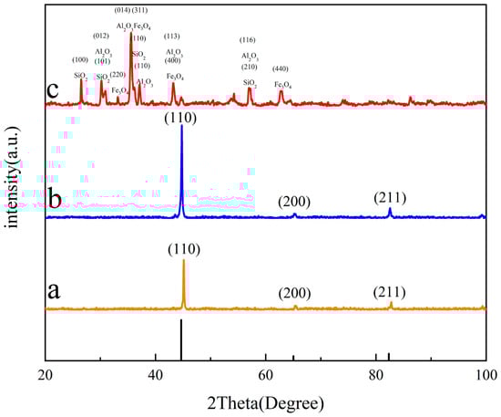 Figure 6. XRD atlas. (a) The substrate surface; (b) the laser-remelted surface; (c) the prefabricated laser-melted surface.
