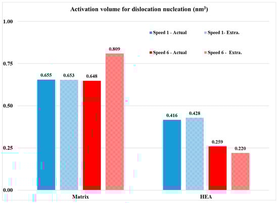 Another important factor that can be calculated from m (strain rate sensitivity)—derived from Equation (11)—is the critical volume for dislocation nucleation, Vcr [44,45].
