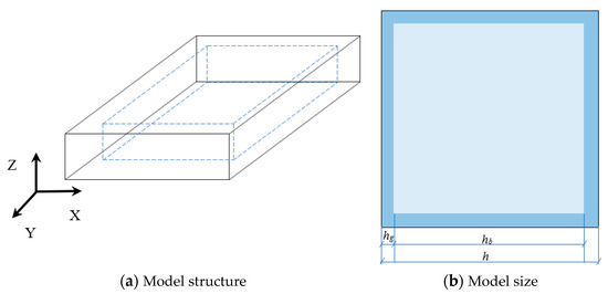 Figure 3 shows the model geometry. The model is established to simulate the behaviors of the ceramic sheet in the kiln. The model is fixed at the bottom, and the other surfaces are free. The third type of temperature loading is used, and the ambient temperature is set at 20 °C. After firing to 1230 °C, the creation and development of cracks inside the ceramic sheet during cooling under different conditions are observed.