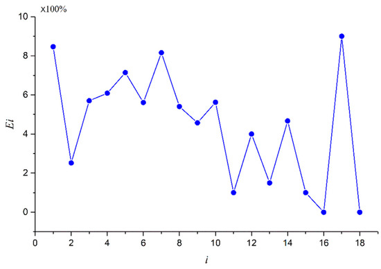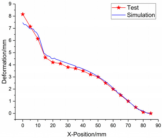 According to the error Ei of the deformation–position simulation for each measuring point, it can be obtained from Formula (6) that the comprehensive error is E = 4.47%.