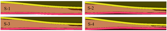 Deformation diagram of 4 types of foam-nickel cores under blast load, and ‘S-n’ indicates four different porosities in which the corresponding porosities are 75%, 85%, 90% and 95% for S-1, S-2, S-3 and S-4 respectively.