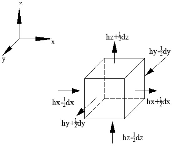 The unit water diffusion modes at different locations within the slab are different. The units were divided into six types based on the number of diffusion surfaces. A 3D humidity diffusion equation was established as an example using a six-sided diffusion unit of 3D diffusion. The 3D differential format is