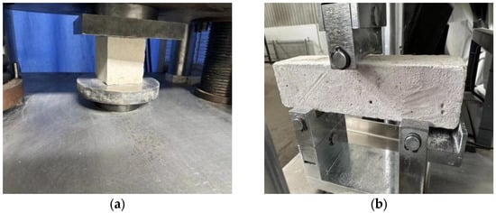 Measurement of mechanical properties of AASR foamed concrete, (a) Compressive strength test; (b) Flexural strength test.