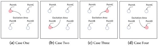Cases used in frequency-domain analysis of forced vibration. The coordinates of points A, B, C, and D are (−100, 100), (−100, −100), (100, 100), and (100, −100), respectively.