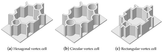 Hierarchical honeycomb with (a) hexagon, (b) circular, and (c) rectangular vertex cells.