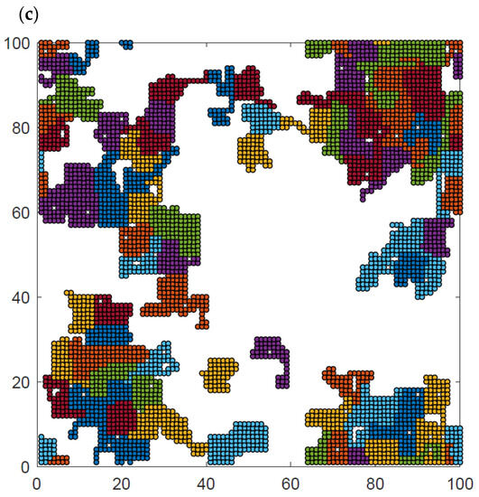 - Sikorski, A. The Influence of the temperature on the percolation threshold in two-dimensional polymer systems. Comput. Methods Sci. Technol. 2020, 26, 143–149. [Google Scholar]