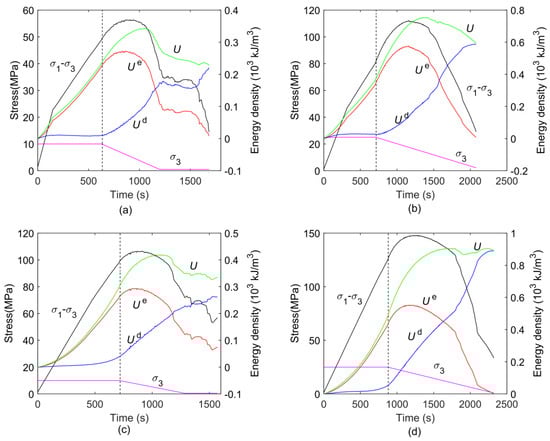 - Li, D.Y.; Sun, Z.; Xie, T.; Li, X.B.; Ranjith, P.G. Energy evolution characteristics of hard rock during triaxial failure with different loading and unloading paths. Eng. Geol. 2017, 228, 270–281. [Google Scholar] [CrossRef]