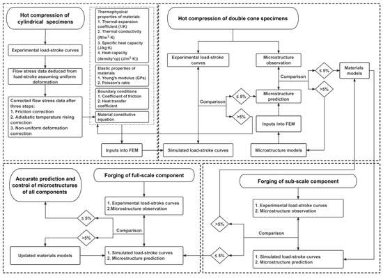 Figure 8 shows the workflow for predicting microstructures from cylindrical compression to DC compression and the forging of production-scale components.