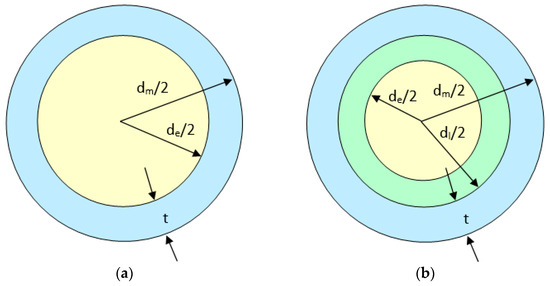 As long as the analyzed configuration preserves the axially symmetrical character, shown in Figure 1b, the same reasoning presented by Grady [7] can be used to express the shell velocity as a function of the specific geometric dimensions, the average radius and the wall thickness . The respective reasoning starts from the principle of energy conservation, given by the following relation:
