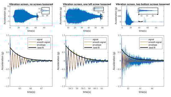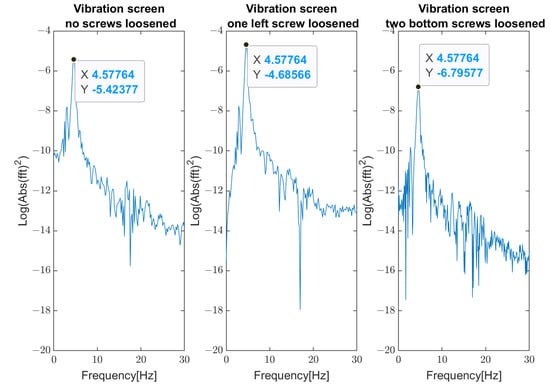 The diagnosis of bolts loosening is a complex scientific and engineering problem considering the potentially massive number of bolted joints and the dramatic outcomes of their loosening, leading to the unexpected redistribution of inner loads between other bolts in joints, not only in rotating systems but in building, bridge, and other infrastructure that use a lot of bolts. Health monitoring of bolts can be divided into two general approaches. The first is based on smart bolts and dense sensors in the local area, and the second approach uses analysis of bolts based on modal analysis of whole structures and systems. A dense sensor approach can be performed by measuring tensile stress with ultrasonic waves [42,43], utilizing acoustic emission on rotating systems [44], electrical conductivity [45], vibroacoustic modulation (VM), and wave energy dissipation (WED) [46,47,48], as well as using spectral sidebands and high-order harmonics [49]. For measuring, such instrumentation can be used as piezoelectric active sensing [50,51,52,53], smart washer manufactured by lead zirconate titanate (PZT) [54,55,56,57]. Also, these methods can be combined with wireless technology for critical civil infrastructure and industrial facility monitoring. In the sieving screens, strong continuous excitation from unbalanced vibrators may have an influence on the reliability of electronic components.