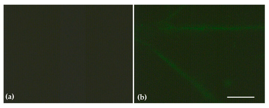 Hydrogen peroxide (H2O2) generation on tomato leaflets 30 min after tomato plants were sprayed with distilled water (control) (a); or with 15 mg L−1 ZnO@OAm NPs (b). Hydrogen peroxide generation is visible by a very light green color on tomato leaflets after being sprayed with 15 mg L−1 ZnO@OAm NPs (b). Scale bar: 500 μm.