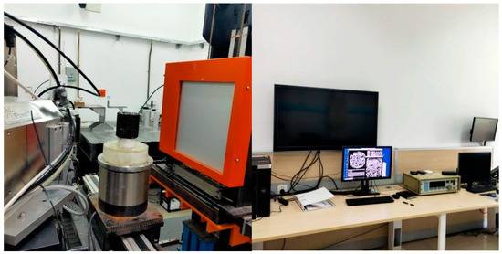 The industrial CT scanning equipment used in this article is an industrial CT scanning 3D scanner (FineTec, Beijing, China) of the Capital Normal University, and the fluorescent tube model is FOMR 300.01Y. The test equipment is shown in Figure 3: