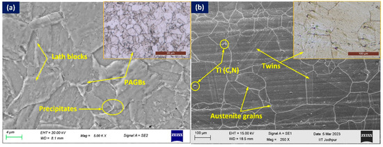 SEM and optical microstructure of (a) P92 steel BM and (b) Alloy 617 BM.