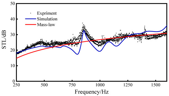 Due to the limitation of experimental conditions, this experiment can only verify the sound transmission loss effect in the frequency range of 250–1600 Hz, but the consistency between simulation and experiment in the frequency range of 250–1600 Hz is better. At the same time, some relevant personnel have verified that the simulation and the acoustic impedance tube experiment have good fidelity [33,34,37]. Therefore, it is determined that the simulation results can represent the real sound insulation effect.
