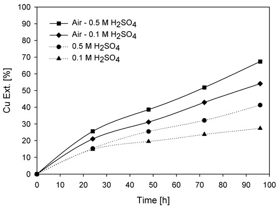 Based on the results shown, it can be observed that air is a much more influential factor than sulfuric acid in copper extraction [40].