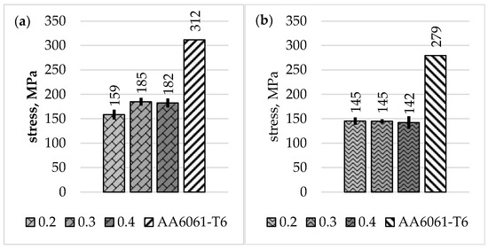 Average values of Rm (a) and RP0.2 (b) for individual offset values and AA6061-T6.
