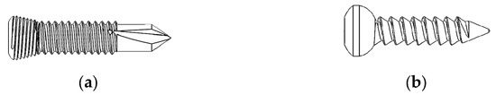 Types of plating screws: (a) locking screw and (b) conventional screw.