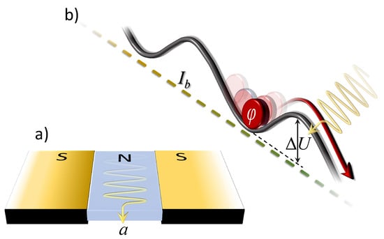 - Guarcello, C.; Piedjou Komnang, A.S.; Barone, C.; Rettaroli, A.; Gatti, C.; Pagano, S.; Filatrella, G. Josephson-Based Scheme for the Detection of Microwave Photons. Phys. Rev. Appl. 2021, 16, 054015. [Google Scholar] [CrossRef]