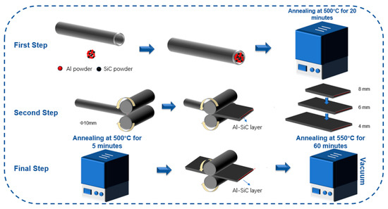 Schematic process of Ti/Al–SiC/Ti clad plate.