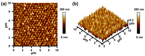 The designed structures were observed with a scanning electron microscope (SEM) at acceleration voltages of 3 and 15 keV. The roughness and surface topography of the structures were characterized by atomic force microscopy (AFM) on an MM8-SYS scanning probe microscope (Bruker AXR, Billerica, MA, USA). The diffuse reflectance spectra of designed structures in the wavelength range of 300–800 nm were measured by an ultraviolet–visible spectrometer (Cary 5000, Agilent, Santa Clara, CA, USA) equipped with an integrating sphere. The angular dependence of the optical properties was measured using a variable-angle reflectance accessory.