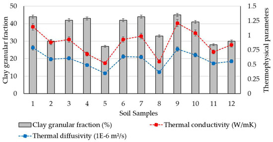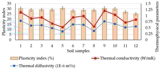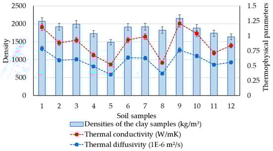 Analysis of the soil samples (S1–S12) was carried out to determine the physical characteristics (identification and condition), mechanical characteristics (compressibility), and thermophysical characteristics (thermal conductivity, thermal diffusivity, and volume heat capacity).