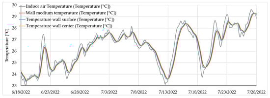 Considering the type and location of the construction element for which the simulation was performed (an interior partition wall), as well as the fact that we were observing aspects related to energy transfer, such as functioning as a thermal buffer or humidity buffer, this analysis did not aim to obtain an evaluation from the perspective of the impact on overall consumption and the costs of achieving comfort conditions (heating or cooling costs). Therefore, it can be appreciated that aspects of the external climate had a lesser influence on the recorded results.