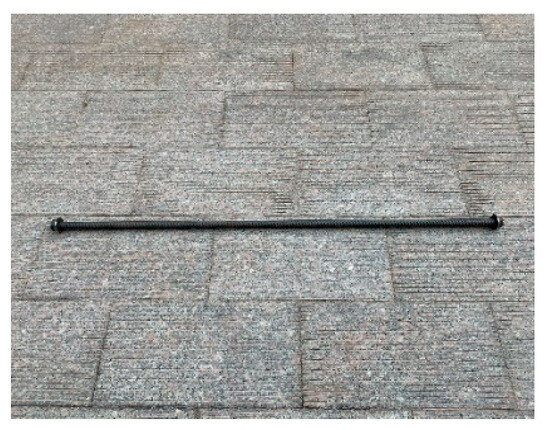 In order to study the influence of shear span ratio, longitudinal reinforcement ratio, horizontal reinforcement ratio, and stirrup reinforcement ratio on the bearing capacity of high-strength concrete deep beams with longitudinal reinforcement with an anchor plate, a total of nine specimens were designed and manufactured. The size was 1660 mm × 600 mm × 200 mm, and the specimens were divided into Groups a–d (Group a took the shear span ratio as the variable, and included DBH-1, DBH-2, and DBH-3. Group b took the longitudinal reinforcement ratio as the variable, and included DBH-2, DBH-4, and DBH-5. Group c took the horizontal reinforcement ratio as the variable, and included DBH-2, DBH-6, and DBH-7. Group d took the stirrup reinforcement ratio as the variable, and included DBH-2, DBH-8, and DBH-9), according to the different influencing factors. Specimen DBH-2 was the control specimen. The detailed reinforcement information and design parameters of the specimens are shown in Table 1 and Figure 1. In order to prevent dense anchorage of longitudinal reinforcement and give full play to the tensile efficiency of longitudinal reinforcement, reduce the cost of steel used for anchorage, facilitate construction, and overcome the difficulty of concrete pouring, the end of longitudinal reinforcement was anchored by the anchor plate. The net bearing area of the anchor plate was four times larger than that of longitudinal reinforcement. The real image of the reinforcement with anchor plates is shown in Figure 2.