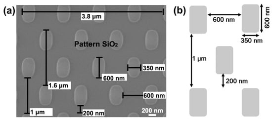 Structural parameter diagram of pattern SiO2: (a) the SEM image; (b) diagrammatic sketch.