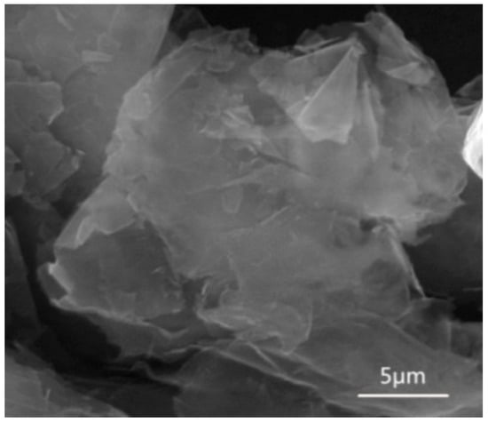 All chemicals were of analytical grade. Graphene nanoplatelets, supplied by Chengdu Organic Chemicals Co., Ltd., Chinese Academy of Sciences (Chengdu, China), were about 4~20 nm in thickness and 5~10 μm in diameter. An SEM image of the graphene nanoplatelets is shown in Figure 1.