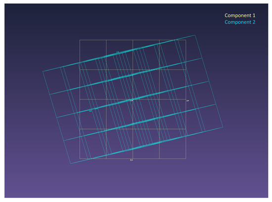 The diffraction patterns of TmMgB5O10 were analyzed using the CrysAlisPro software v. 1.171.41.119a [15]. As a result, reflexes corresponding to two components with close unit cell parameters a1 = 8.476(1) Å, b1 = 7.577(1) Å, c1 = 9.368(1) Å, a2 = 8.474(2) Å, b2 = 7.572(2) Å, and c2 = 9.361(2) Å were revealed. No rigid regularities of the mutual orientation of the bases of these components, associated with a significant change in the size of the unit cell or sp. gr. (superstructure), were found (Figure 3).