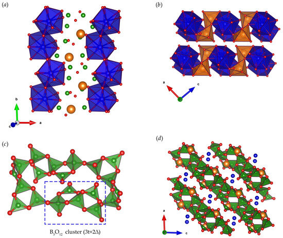 - Leonyuk, N.I.; Maltsev, V.V.; Volkova, E.A. Crystal chemistry of high-temperature borates. Molecules 2020, 25, 2450. [Google Scholar] [CrossRef]