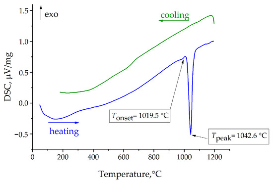 Differential scanning calorimetry (DSC) measurements were performed by means of a STA 449 F5 Jupiter (Netzsch, Selb, Germany) in the temperature range of 50–1200 °C with a heating rate of 20 °C/min in Ar gas flow. A PtRh20 crucible of 85 μL volume was used in the DSC experiments.