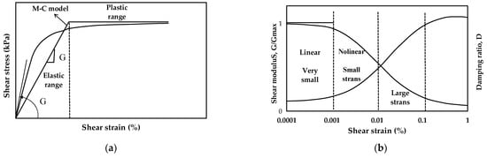 - Borja, R.I.; Lin, C.H.; Sama, K.M.; Masada, G.M. Modelling non-linear ground response of non-liquefiable soils. Earthq. Eng. Struct. Dyn. 2000, 29, 63–83. [Google Scholar] [CrossRef]