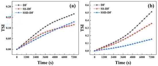 TSI of drilling fluids with saturated NaCl ((a) 25 °C; (b) 200 °C).