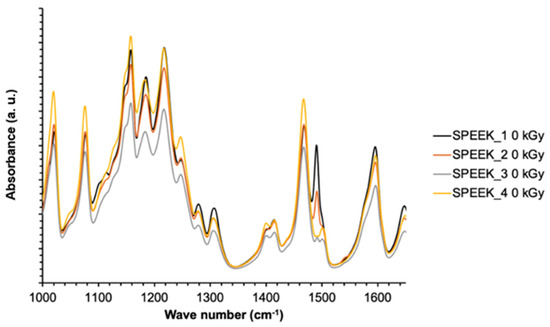 Normalized FT-IR spectra of non-irradiated SPEEK membranes.