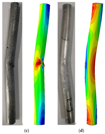 The mechanical parameters of the 6063 aluminum alloy specimen are shown in Table 2. The boundary conditions and loading speed are the same as before, and the buckling deformation of the specimen is shown in Figure 9.