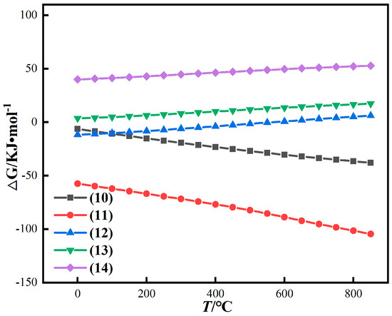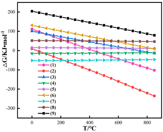 HSC-Chemistry 6.0 software was used to perform thermodynamic calculations of the above reactions, and the calculation results are shown in Figure 5.